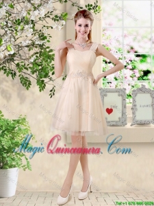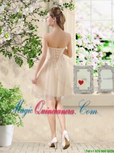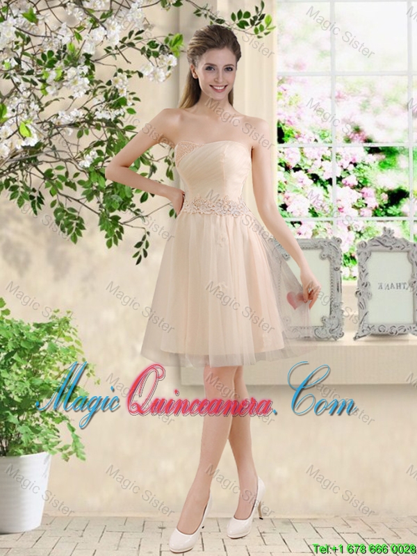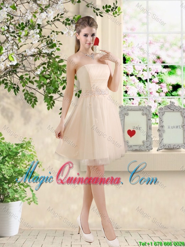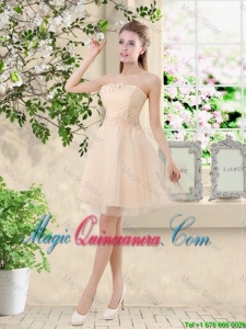Comfortable Strapless Champagne Dama Dresses with Knee Length