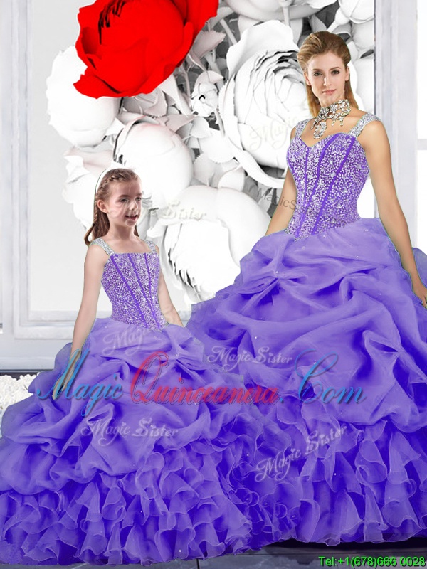 Amazing Straps Sleeveless Organza Vestidos de Quinceanera Beading and Ruffles and Pick Ups Lace Up