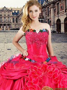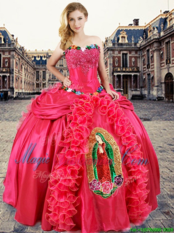 Coral Red Quinceanera Dress Military Ball and Sweet 16 and Quinceanera and For with Beading and Appliques and Ruffles Sweetheart Sleeveless Lace Up