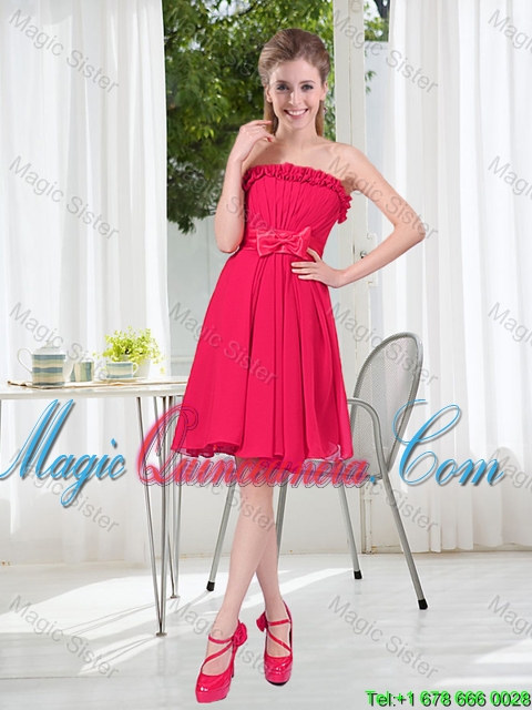 Coral Red Strapless Bowknot Dama Dresses for 2016 Summer