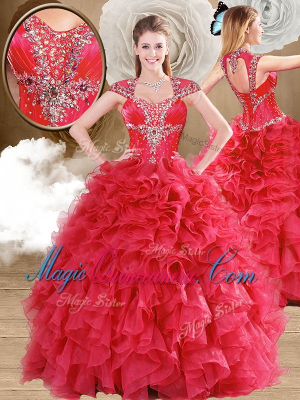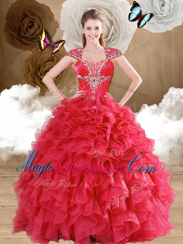 , Couture Beading and Ruffles Quinceanera Gowns in Red