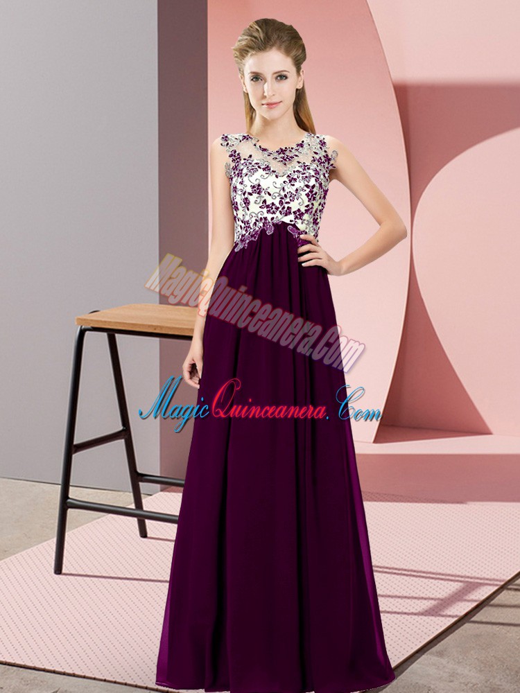 Custom Design Floor Length Zipper Quinceanera Dama Dress Dark Purple for Wedding Party with Beading and Appliques