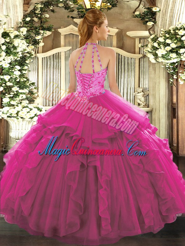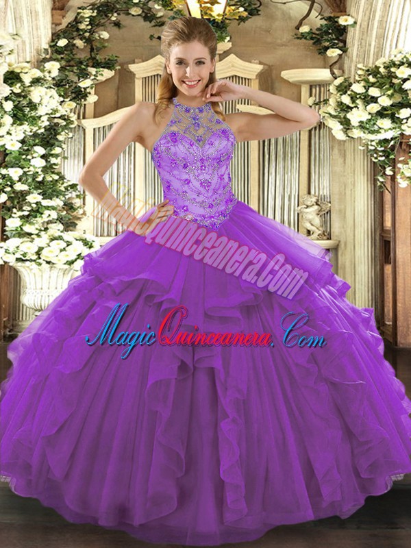 Custom Design Purple Sleeveless Beading and Embroidery Floor Length 15th Birthday Dress