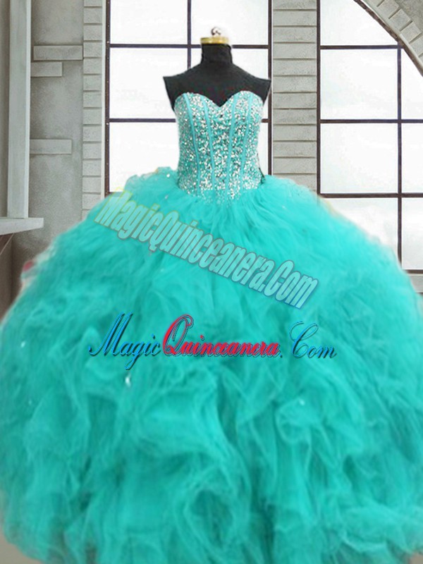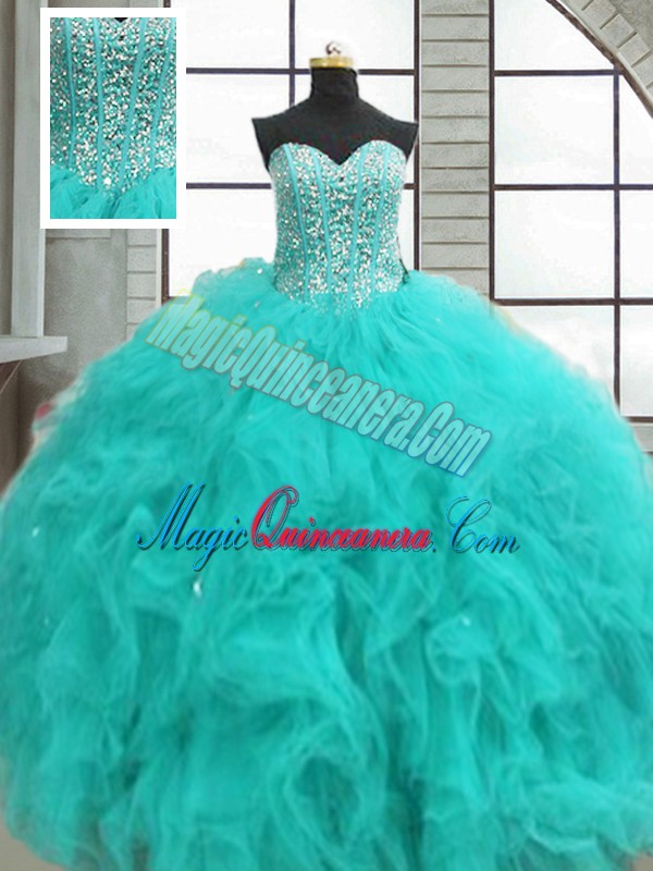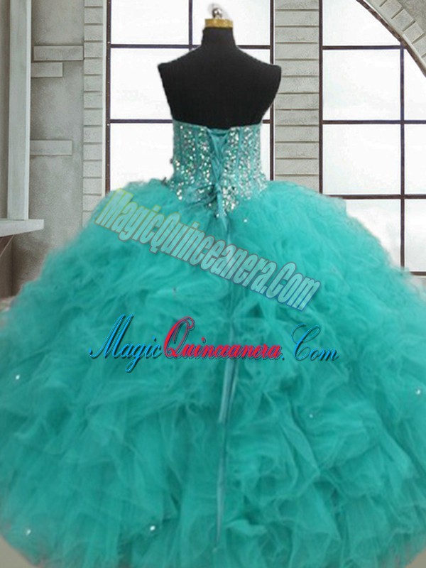 Custom Design Sleeveless Beading and Ruffles Lace Up 15th Birthday Dress