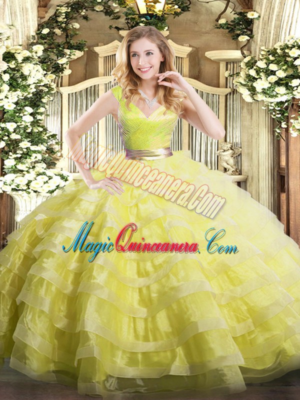, Custom Design Sleeveless Ruffled Layers Zipper Quinceanera Dress