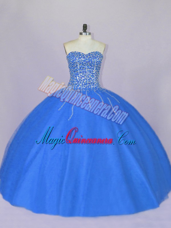 , Custom Design Tulle Sleeveless Floor Length Vestidos de Quinceanera and Beading