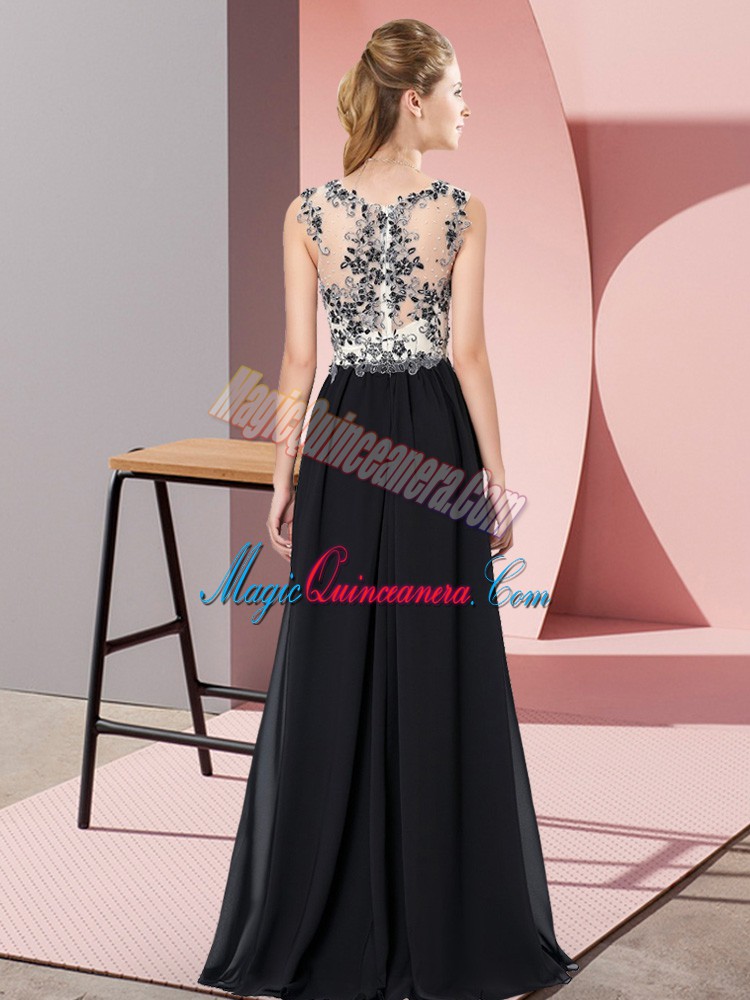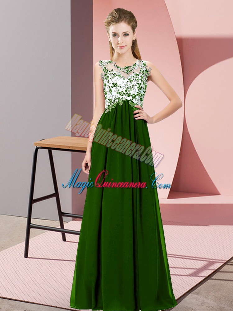 Custom Designed Floor Length Green Vestidos de Damas Chiffon Sleeveless Beading and Appliques