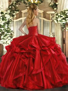 Custom Designed Floor Length Lace Up Sweet 16 Dresses Hot Pink for Military Ball and Sweet 16 and Quinceanera with Ruffles