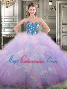 Custom Designed Four Piece Multi-color 15 Quinceanera Dress Military Ball and Sweet 16 and Quinceanera and For with Beading and Ruffles Sweetheart Sleeveless Lace Up