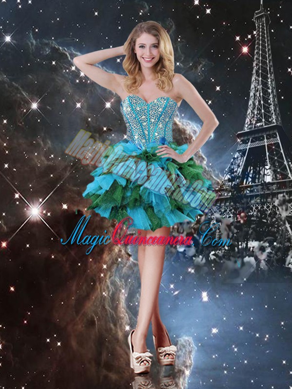 Eye-catching Sleeveless Lace Up Floor Length Beading and Ruffled Layers High School Pageant Dress