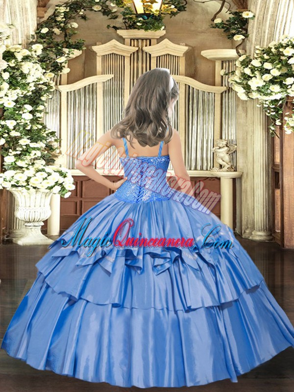 Custom Designed Sleeveless Lace Up Floor Length Beading and Ruffled Layers Pageant Dress Wholesale