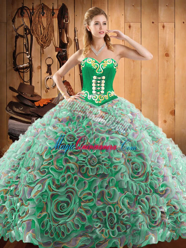 Custom Designed Sweetheart Sleeveless Sweep Train Lace Up Quinceanera Dress Multi-color Satin and Fabric With Rolling Flowers