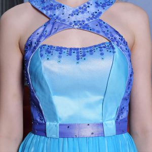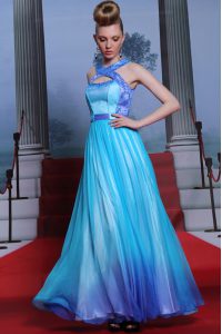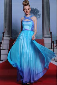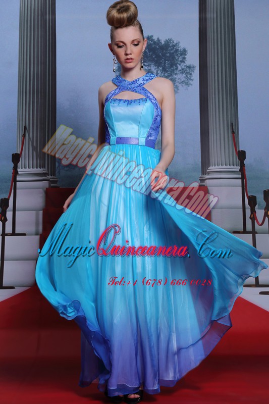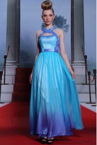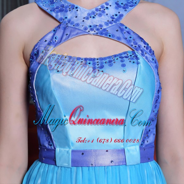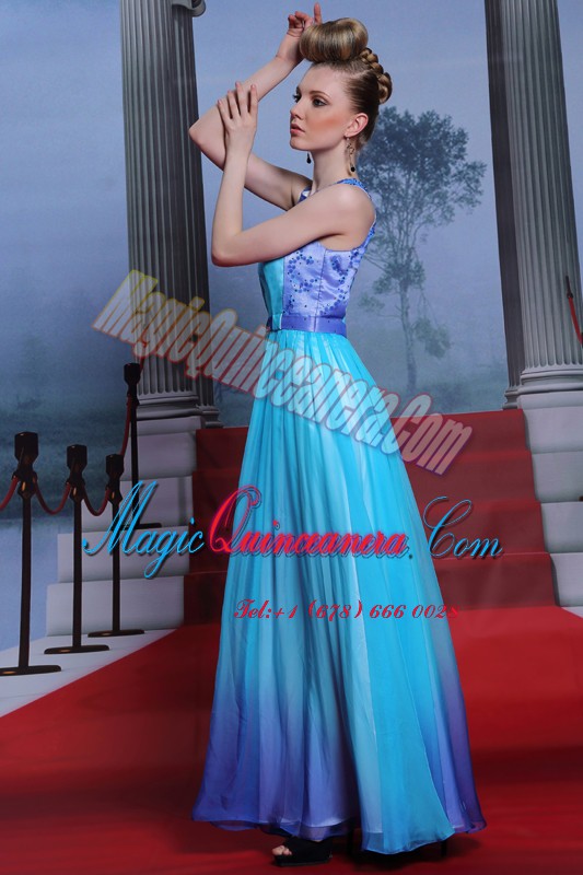 Custom Fit Blue Mother Of The Bride Dress Prom and For with Beading and Belt Scoop Sleeveless Zipper