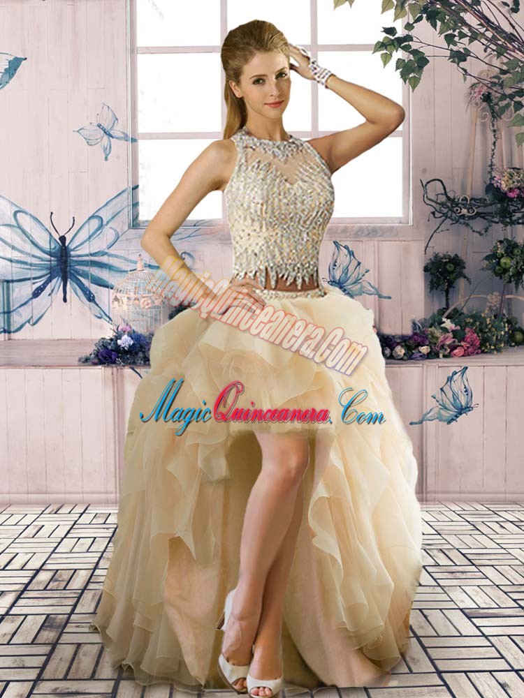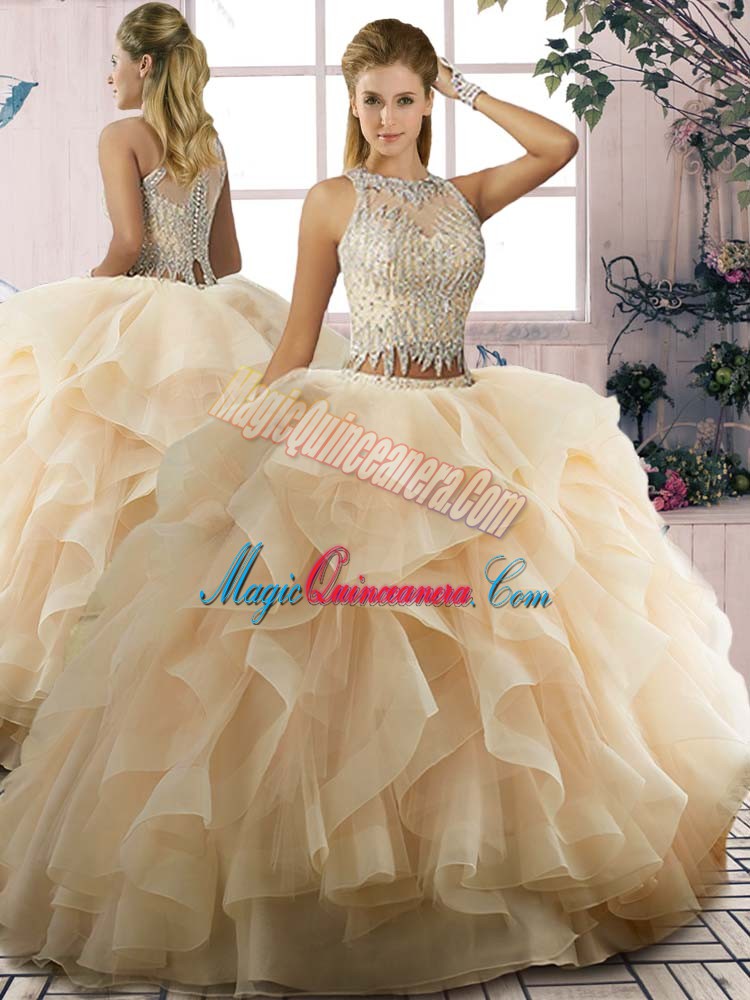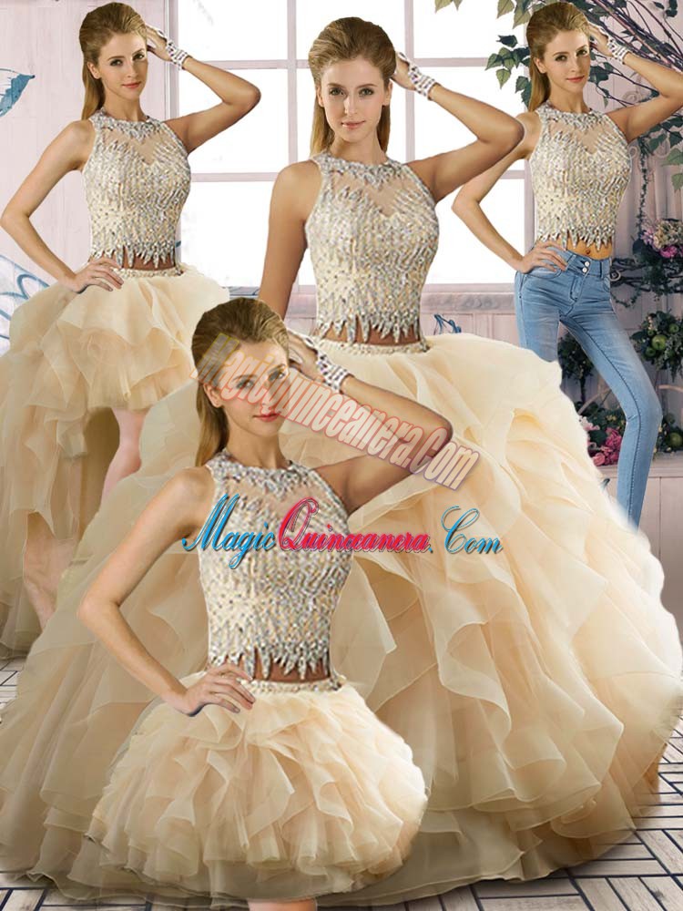 Custom Fit Champagne Sweet 16 Dress Sweet 16 and Quinceanera with Beading and Ruffles Scoop Sleeveless Zipper