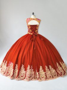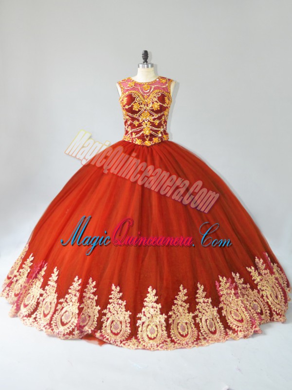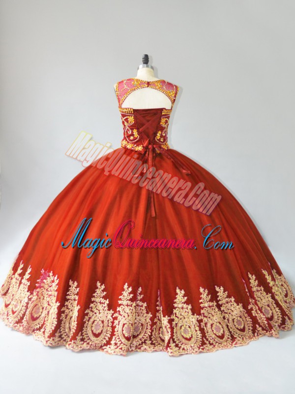 Custom Fit Floor Length Lace Up Vestidos de Quinceanera Rust Red for Sweet 16 and Quinceanera with Appliques