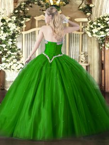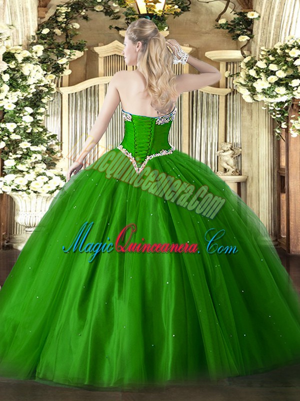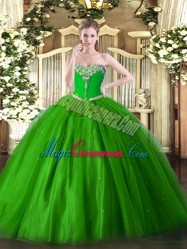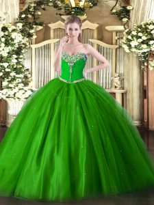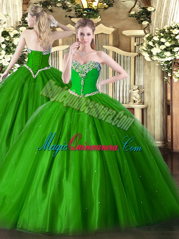 Custom Fit Green Quinceanera Dresses Military Ball and Sweet 16 and Quinceanera with Beading Sweetheart Sleeveless Lace Up