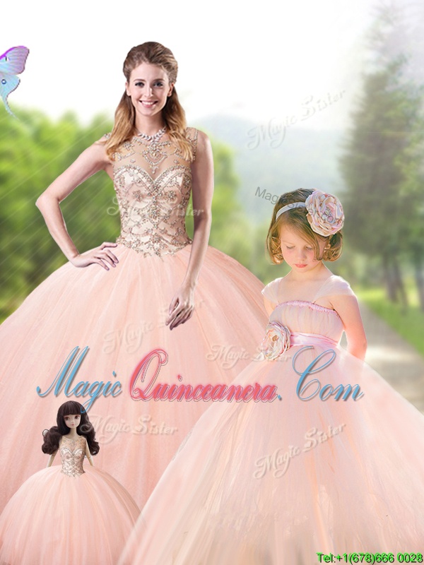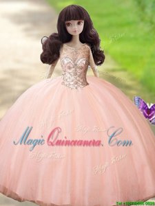 Custom Fit Peach Scoop Lace Up Beading Vestidos de Quinceanera Sleeveless