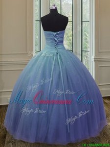 Custom Fit Purple Tulle and Sequined Lace Up Quinceanera Gowns Sleeveless Floor Length Beading and Ruching