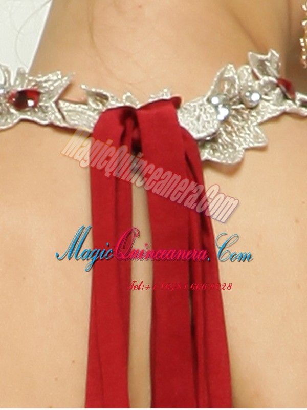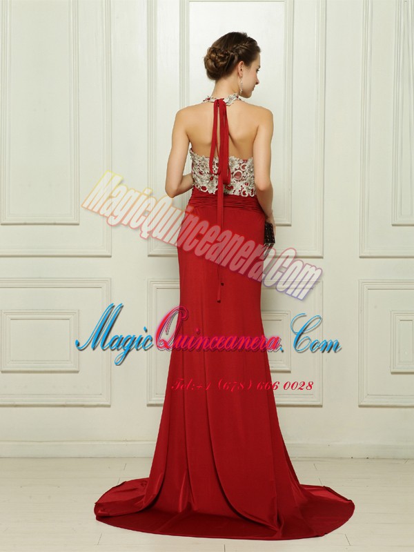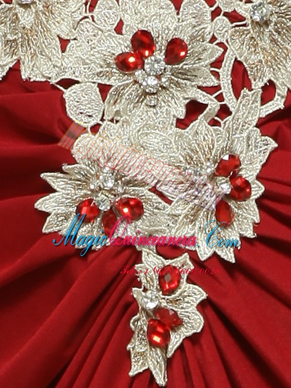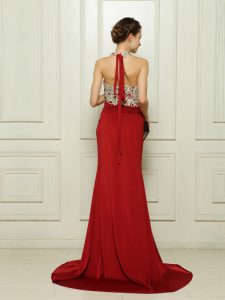 , Custom Fit Red Sleeveless With Train Beading and Appliques Zipper Prom Gown
