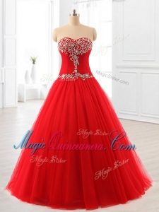 , Custom Made A Line Beading Tulle Quinceanera Dresses for 2016