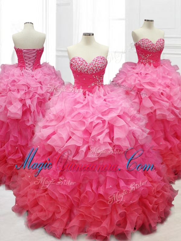 , Custom Made Ball Gown Quinceanera Dresses with Beading and Ruffles