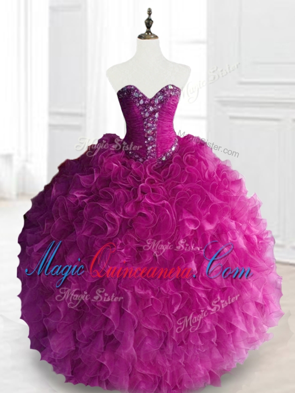 , Custom Made Beading and Ruffles Quinceanera Dresses in Fuchsia