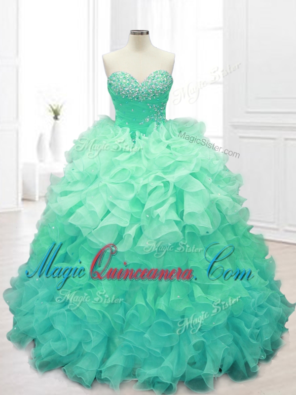 , Custom Made Beading and Ruffles Sweet 16 Dresses in Apple Green