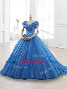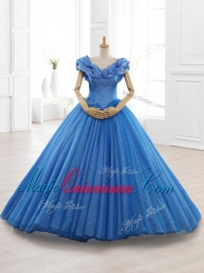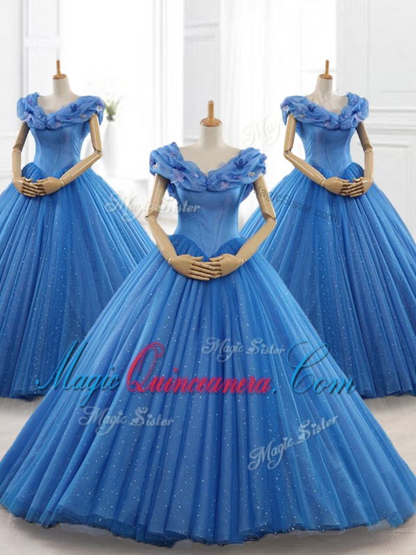 , Custom Made Blue Off the Shoulder Long Quinceanera Dresses with Appliques