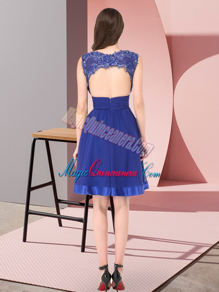 Custom Made Olive Green Empire Beading and Appliques Dama Dress Backless Chiffon Sleeveless Mini Length