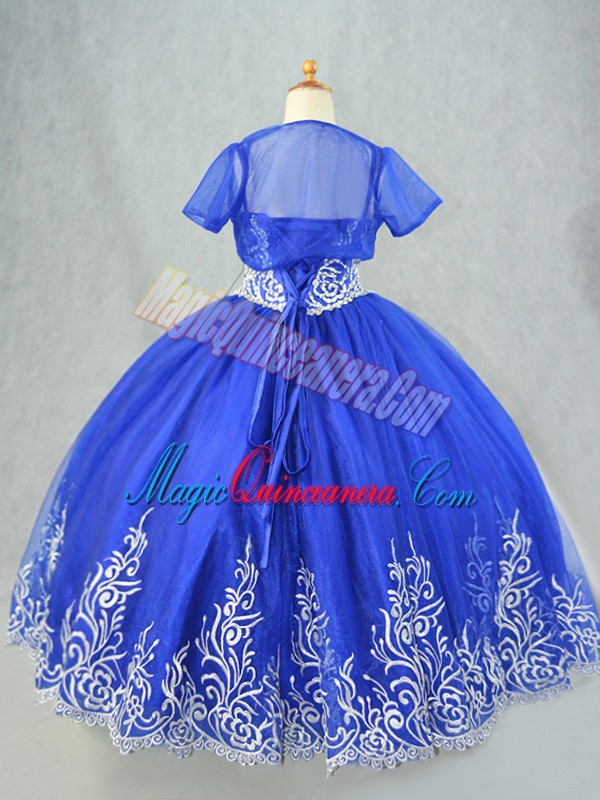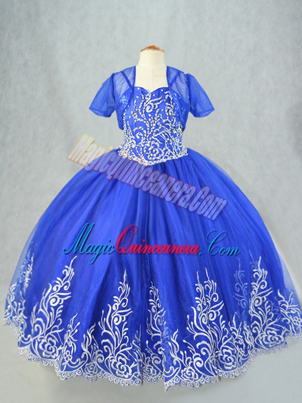 Custom Made Royal Blue Tulle Lace Up Little Girls Pageant Gowns Sleeveless Floor Length Beading and Embroidery