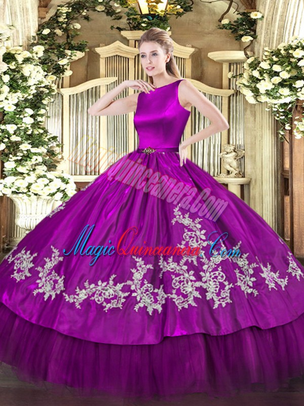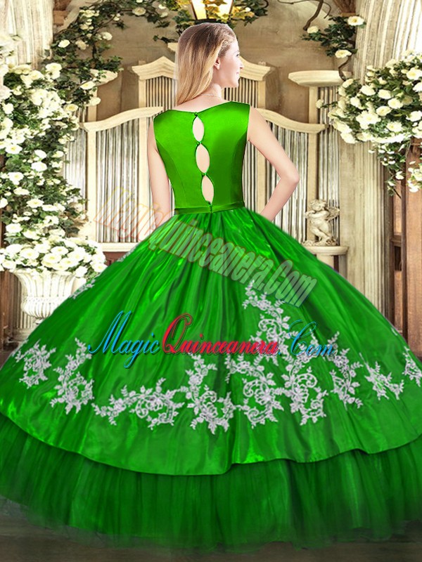 Custom Made Sleeveless Clasp Handle Floor Length Embroidery Quince Ball Gowns
