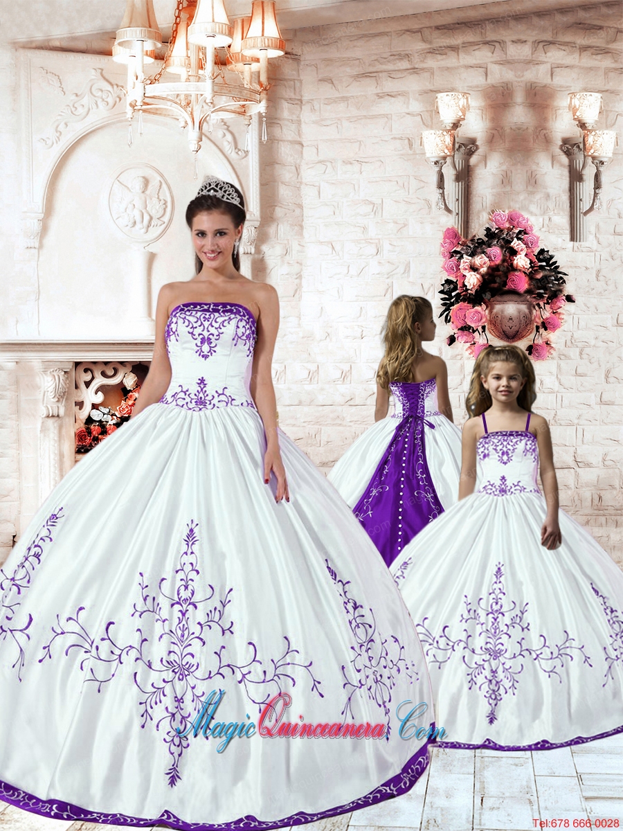 , Customize Purple Embroidery White Princesita Dress for 2015