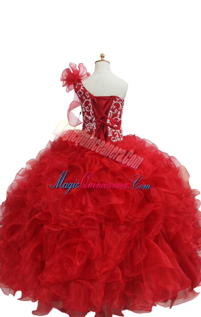Customized Ball Gowns Winning Pageant Gowns Lilac One Shoulder Organza Sleeveless Floor Length Lace Up - Magic Quinceanera