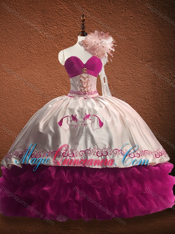 Customized Fuchsia and White Quinceanera Dress with Ruffled Layers and Pattern
