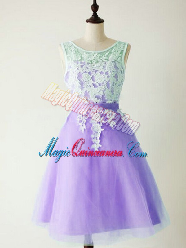 Customized Lavender A-line Scoop Sleeveless Tulle Knee Length Lace Up Lace Damas Dress - Magic Quinceanera