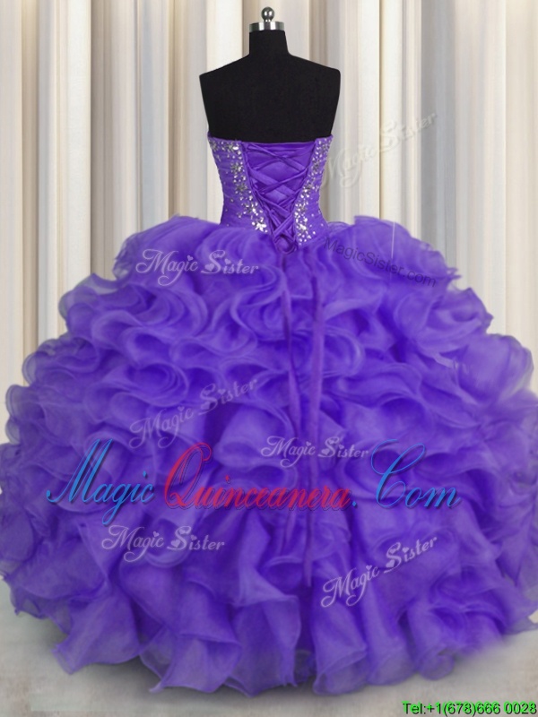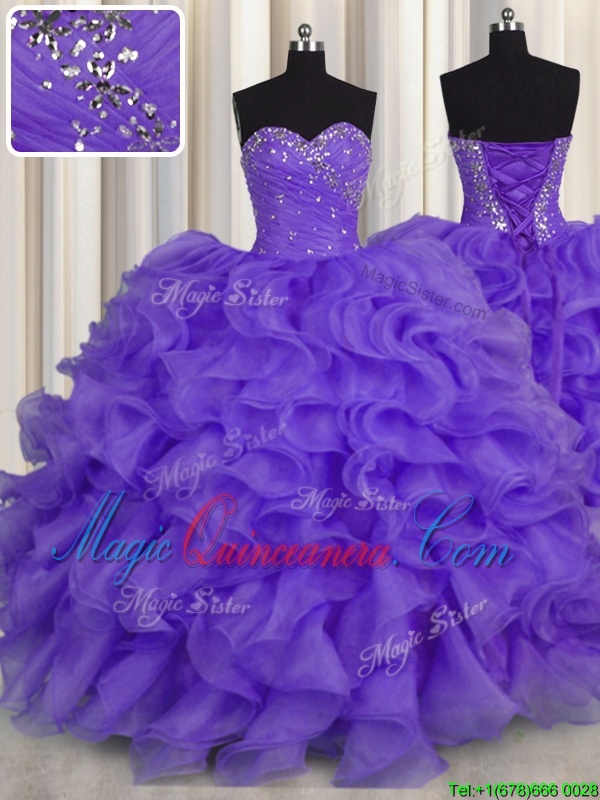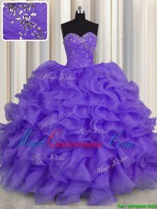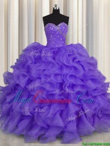 Customized Lavender Sweetheart Lace Up Beading and Ruffles Sweet 16 Dresses Sleeveless