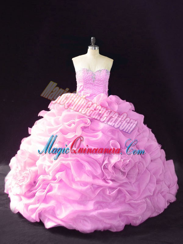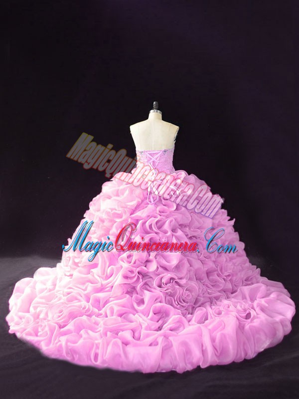 Customized Lilac 15th Birthday Dress Sweetheart Sleeveless Court Train Lace Up
