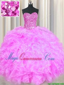Best Selling Organza Sleeveless Floor Length Vestidos de Quinceanera and Beading and Ruffles