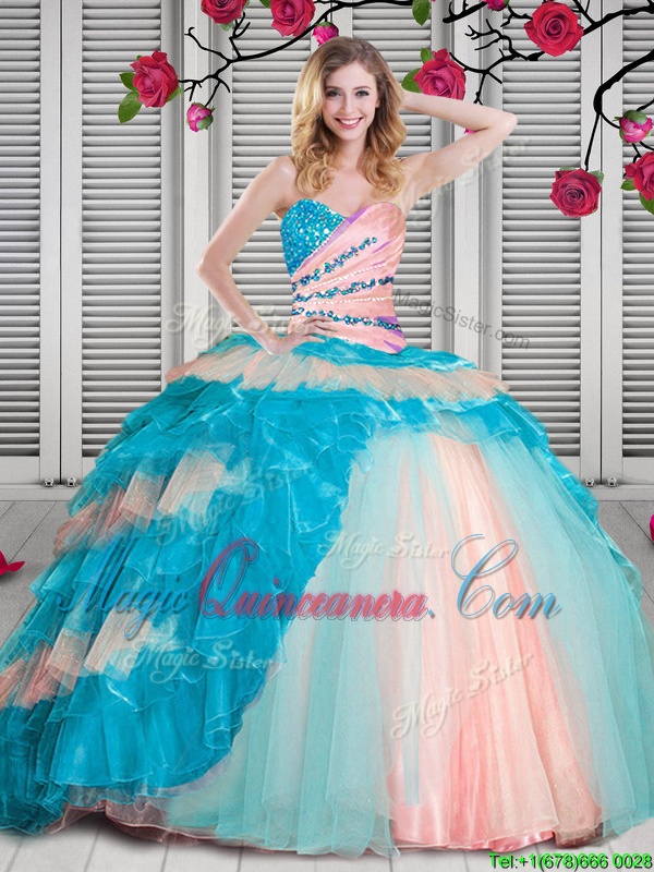 Customized Multi-color Lace Up 15 Quinceanera Dress Beading and Ruching Sleeveless Floor Length