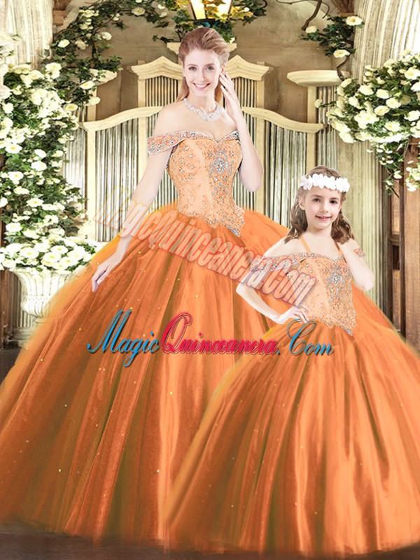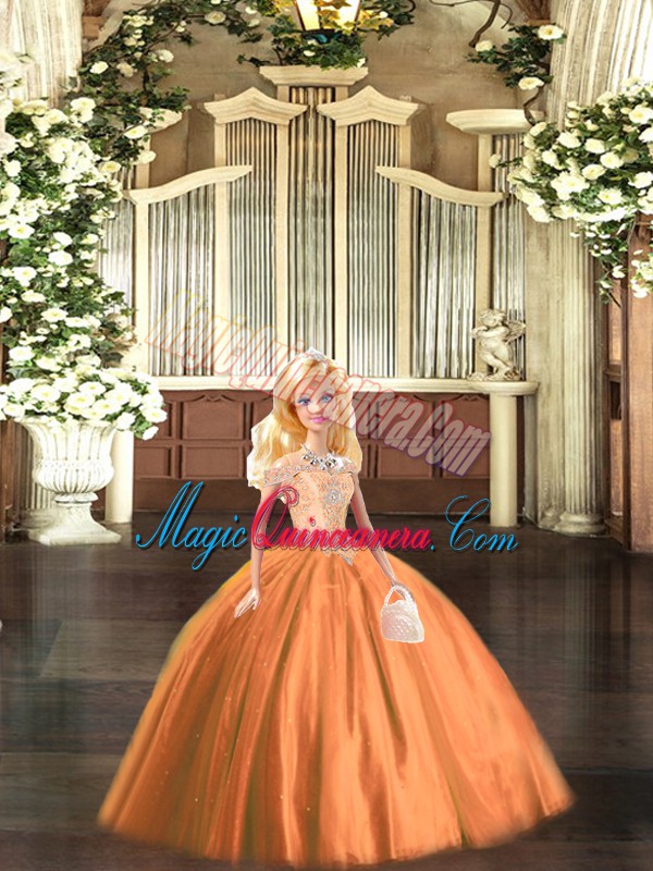 Customized Orange Red Sleeveless Beading Floor Length Quinceanera Gown