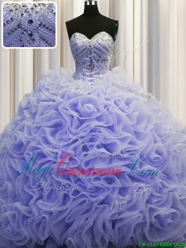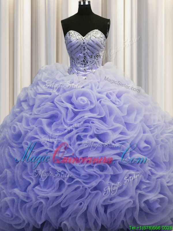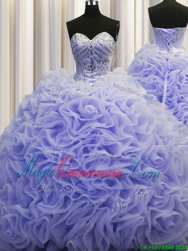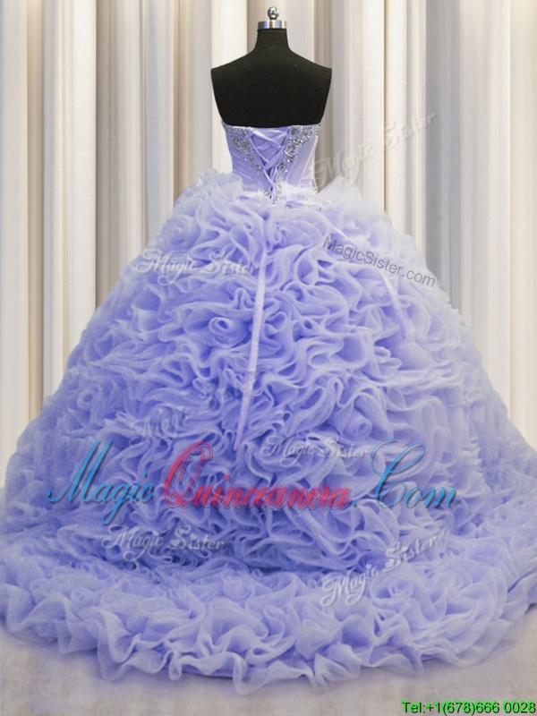 Customized Rolling Flowers Lavender Lace Up 15 Quinceanera Dress Beading and Pick Ups Sleeveless Brush Train