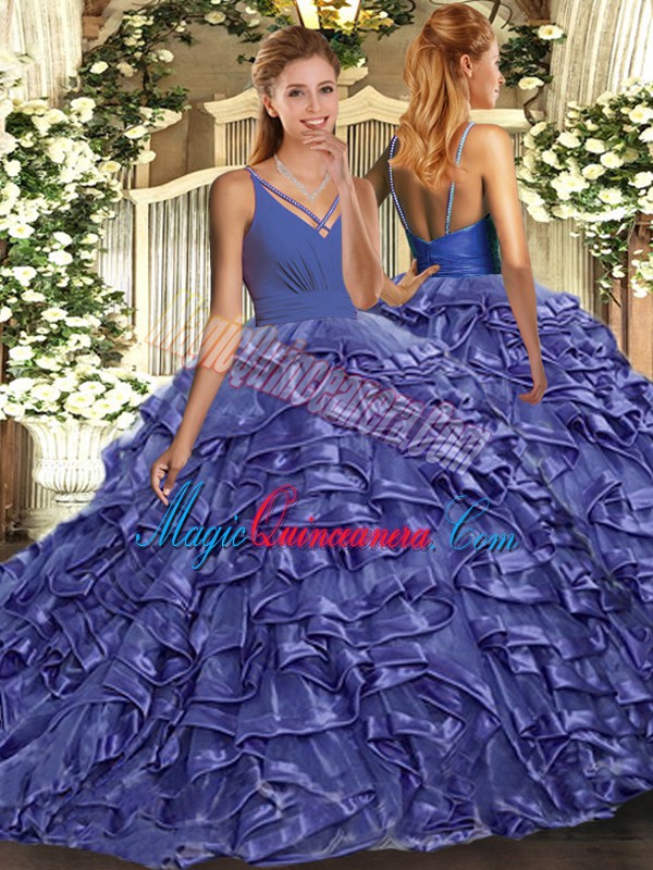 Customized Sleeveless Backless Floor Length Beading and Ruffles 15th Birthday Dress