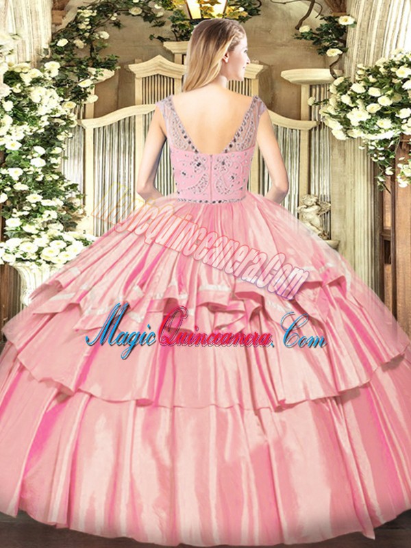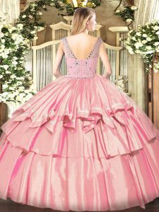 Customized Sleeveless Floor Length Beading and Ruffled Layers Zipper Quinceanera Gown with Lilac