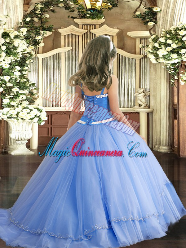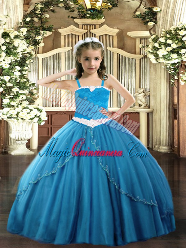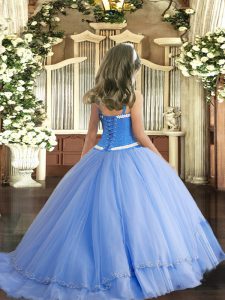 Customized Tulle Sleeveless Pageant Dress Toddler Sweep Train and Appliques