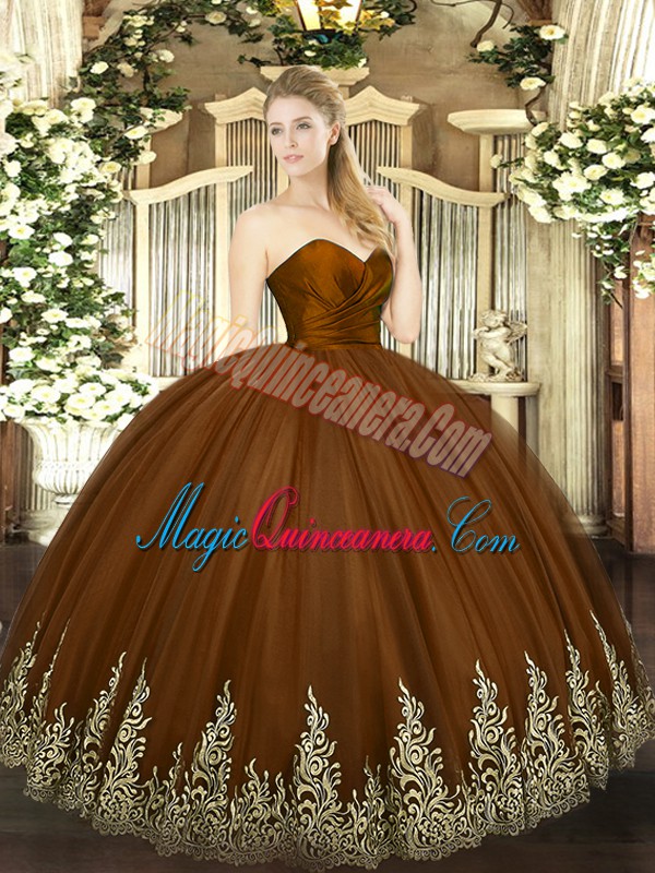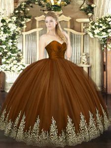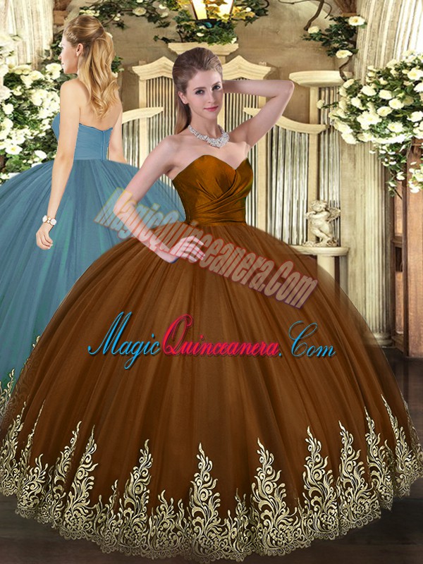 Cute Ball Gowns Sweet 16 Quinceanera Dress Brown Sweetheart Tulle Sleeveless Floor Length Zipper