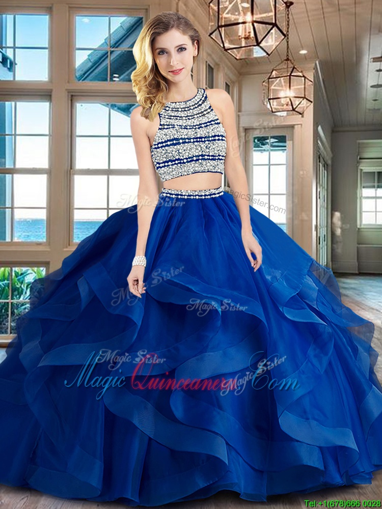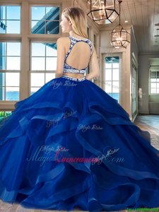 Cute Royal Blue Scoop Neckline Beading and Ruffles Sweet 16 Dresses Sleeveless Backless