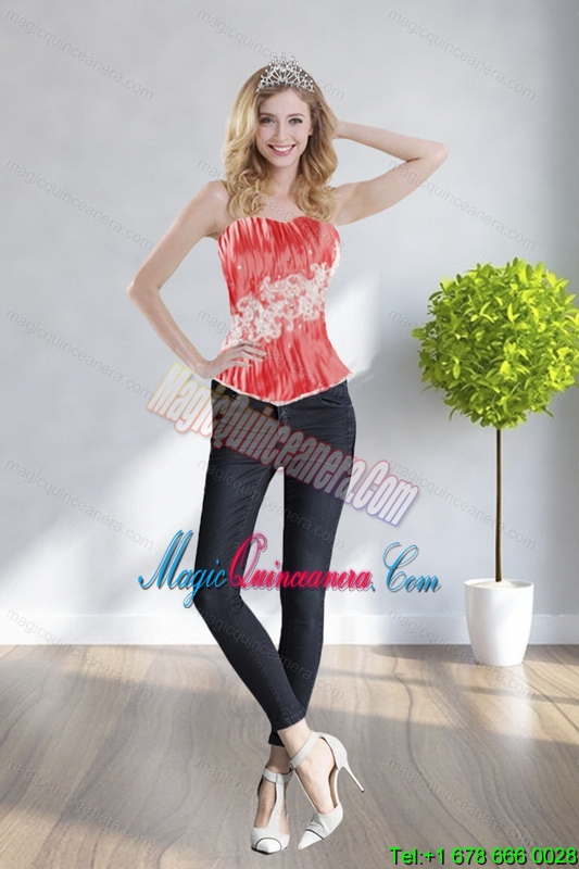 Cute Strapless Watermelon Red Corset With Appliques and Beading