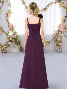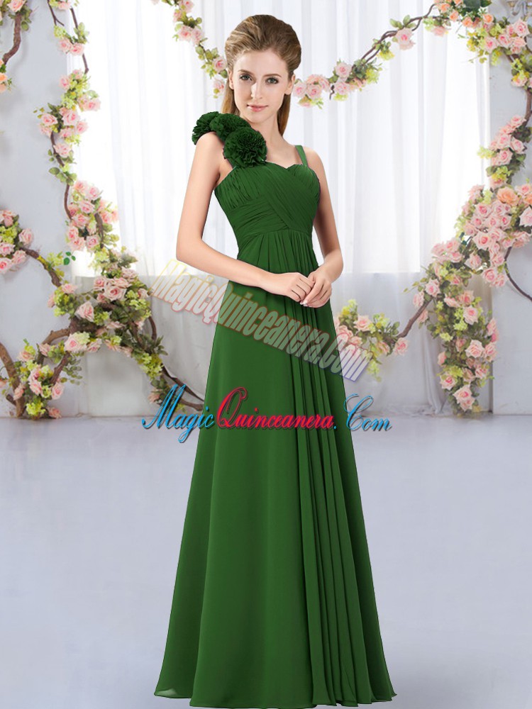 Dark Green Chiffon Lace Up Quinceanera Court of Honor Dress Sleeveless Floor Length Hand Made Flower