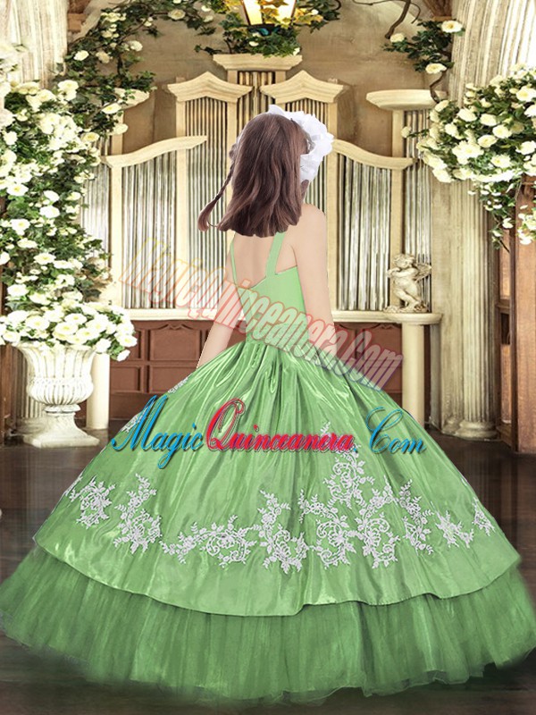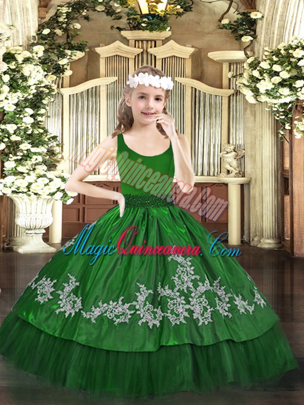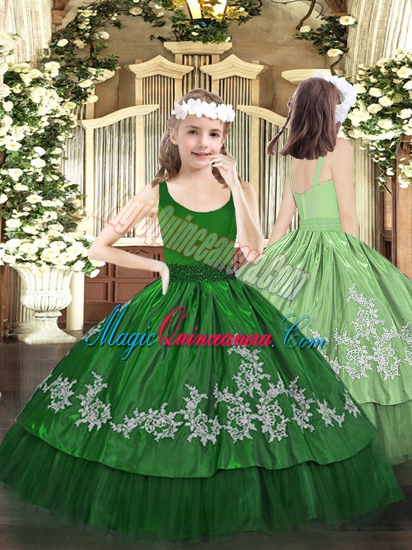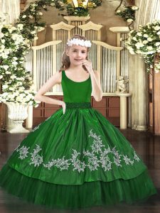 Dark Green Little Girls Pageant Gowns Party and Quinceanera with Beading and Appliques Scoop Sleeveless Zipper