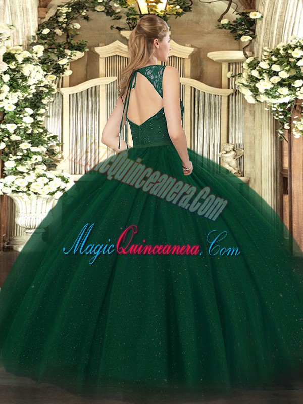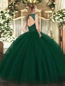 Dark Green Sleeveless Tulle Backless Vestidos de Quinceanera for Military Ball and Sweet 16 and Quinceanera